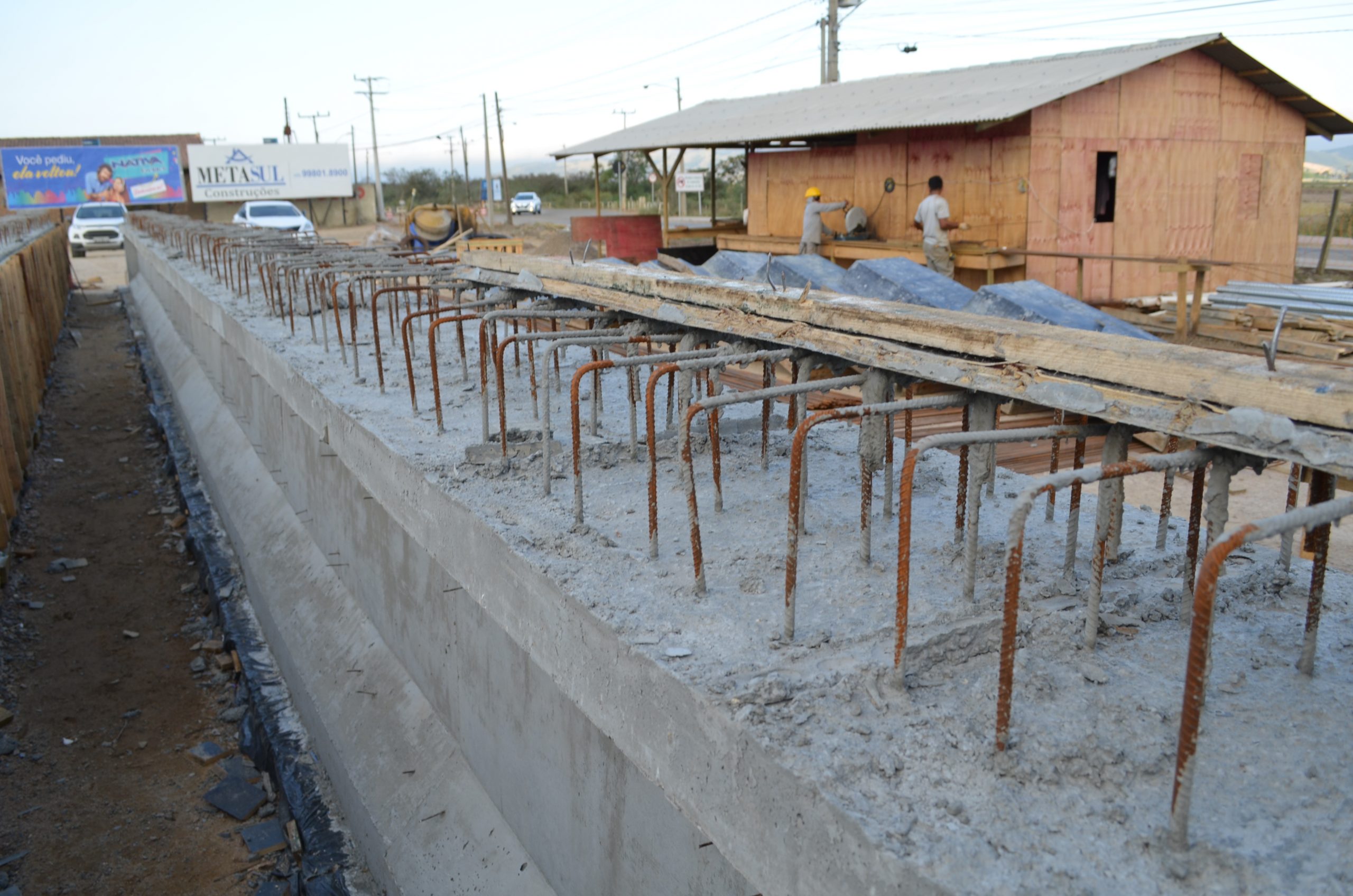 Foram iniciadas nesta semana a produção das primeiras vigas pré-moldadas para a construção da ponte sobre o rio Corrêa, na rua Sílvio Búrigo, no bairro Monte Castelo, em Tubarão. A concretagem das peças de 21 metros de comprimento é feita no próprio canteiro de obras.