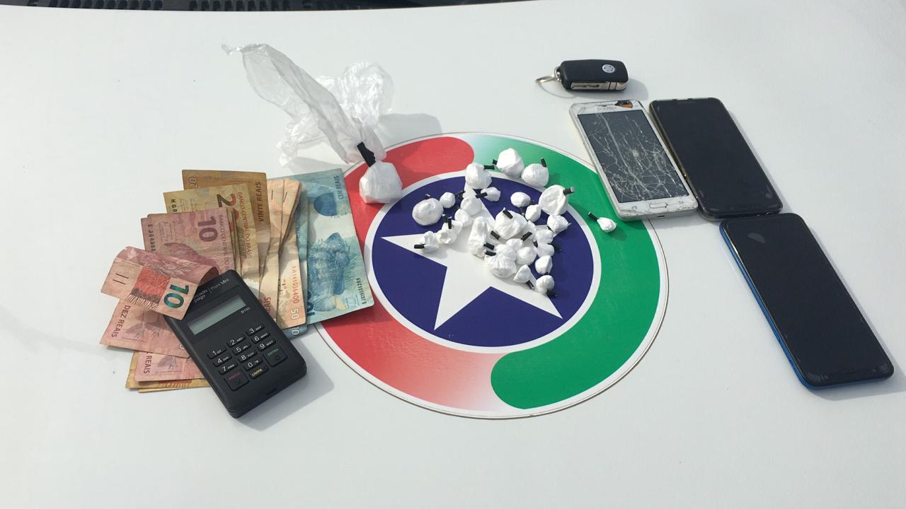 Nesta sexta-feira (26), a guarnição da Polícia Militar de Gravatal, em rondas na SC-370, deparou-se com dois homens em atitude suspeita às margens da rodovia, no bairro Pouso Alto. Ao realizar a abordagem, foi efetuada a busca pessoal nos dois masculinos e identificado um deles, onde foram encontrados, no bolso da bermuda, dois aparelhos celulares e R$ 100 em espécie, e, no bolso esquerdo, uma meia com três balões pretos, e dentro dos balões estavam algumas porções de cocaína. A guarnição de serviço já possuía conhecimento de inúmeras denúncias envolvendo o autor e seu veículo, um VW/Golf, na prática de tele-entrega de drogas.