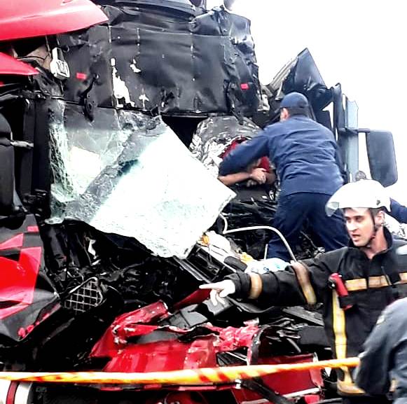 Um grave acidente registrado por volta das 12h desta terça-feira (28), no quilômetro 312 da BR-101, no bairro Cabeçuda, em Laguna – sentido norte -, nas proximidades da Ponte Anita Garibaldi, envolveu três caminhões e deixou um dos motoristas preso às ferragens e gravemente ferido.