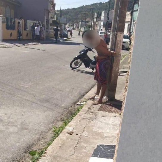 O homem foi amarrado a um poste após ter sido contido por populares. A cena inusitada ocorreu no início da tarde. O crime foi flagrado pelos vizinhos.