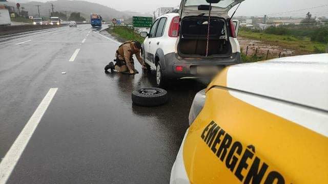 Na tarde desta quarta, os policiais do Posto 01 se depararam com um carro encostado na SC-401, em Florianópolis. Ao se aproximarem, perceberam que se tratava de uma senhora, que precisava de ajuda na troca do pneu do carro, que danificou.
