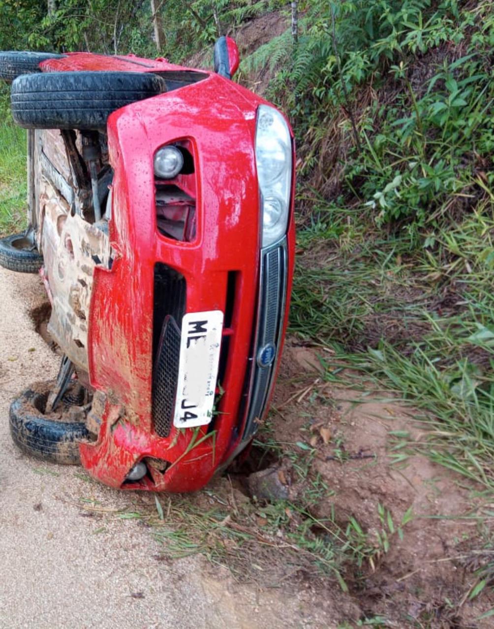 O motorista de um Fiat Palio teve ferimentos leves após capotar seu veículo em uma via do bairro Alto Travessão, em Braço do Norte, na tarde desta quarta-feira (30).
