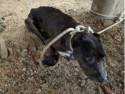 Cadela vítima de maus-tratos é resgatada e internada em estado grave