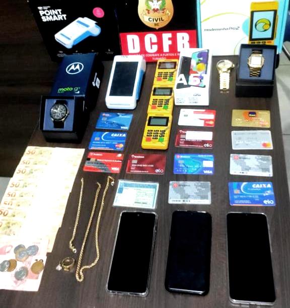 Com o suspeito, os policiais apreenderam o cartão de uma das vítimas, já no quarto em que ele se encontrava hospedado, além de máquinas de cartão de crédito/débito, cartões de crédito/débito e outros objetos adquiridos com os valores ilícitos obtidos por meio dos golpes. Foi dada voz de prisão em flagrante ao suspeito, o qual foi conduzido à Delegacia de Polícia de Tubarão para os procedimentos protocolares.