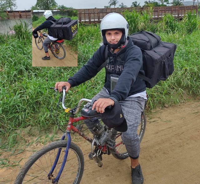 Rafael Henrique Cipriano, de 18 anos, morador do bairro Praia Redonda, em Tubarão, é um desses exemplos de superação nesta época de pandemia. Com a baixa oferta de empregos na região, o jovem decidiu iniciar um serviço de entrega por meio de aplicativo. O trabalhador usa sua bicicleta com motor para iniciar sua nova profissão. Ele mora com a mãe e segundo Rafael, tira seu próprio sustento, compra roupas e ainda ajuda em casa no pagamento das contas.