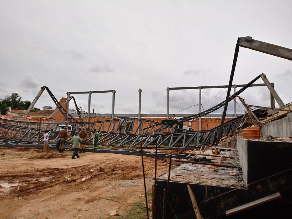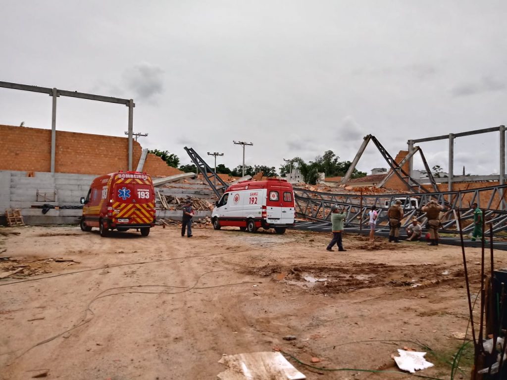 O ginásio, na rua Professor Pedro Michels, no bairro Nossa Senhora de Fátima, área central do município, estava com a estrutura praticamente pronta quando veio abaixo na manhã desta quarta-feira (18). As primeiras informações, extraoficiais, apontam que pelo menos 12 operários trabalhavam no local no momento e dois ficaram feridos, um deles em estado grave. As vítimas foram encaminhadas ao Hospital Santa Teresinha, em Braço, mas não é descartada a transferência de um dos trabalhadores ao Hospital Nossa Senhora da Conceição (HNSC), em Tubarão.