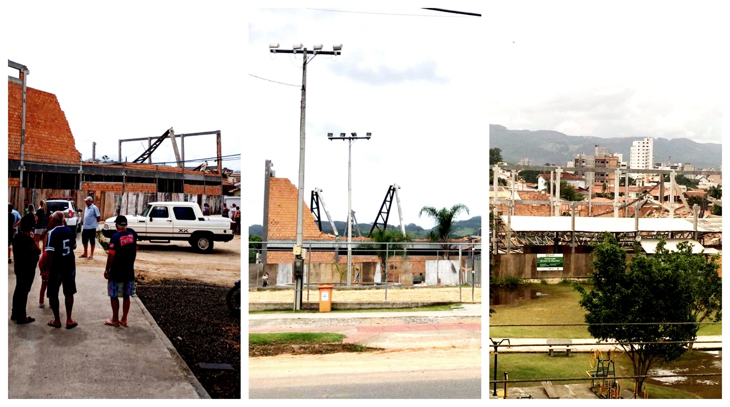 O ginásio, na rua Professor Pedro Michels, no bairro Nossa Senhora de Fátima, área central do município, estava com a estrutura praticamente pronta quando veio abaixo na manhã desta quarta-feira (18). As primeiras informações, extraoficiais, apontam que pelo menos 12 operários trabalhavam no local no momento e dois ficaram feridos, um deles em estado grave. As vítimas foram encaminhadas ao Hospital Santa Teresinha, em Braço, mas não é descartada a transferência de um dos trabalhadores ao Hospital Nossa Senhora da Conceição (HNSC), em Tubarão.