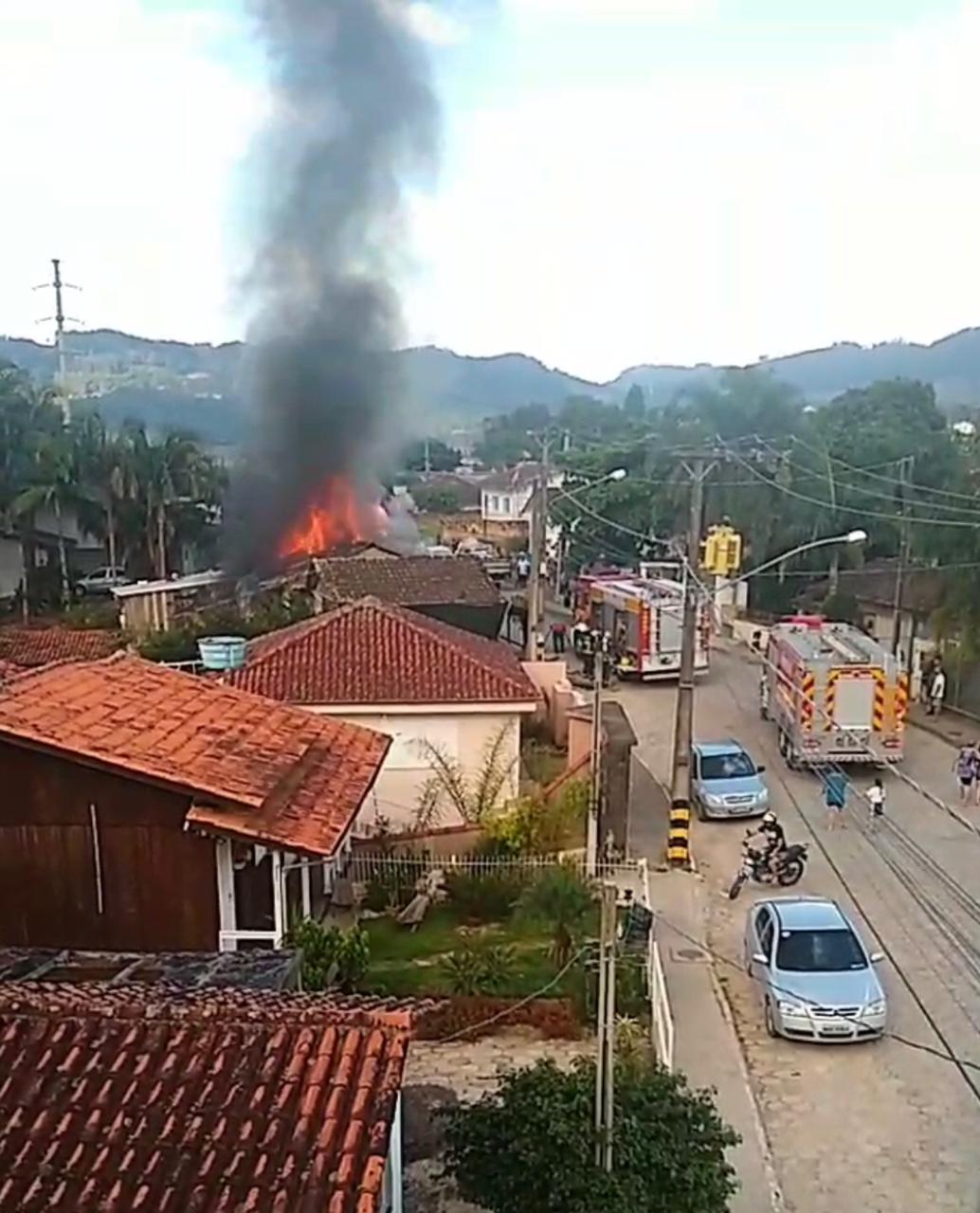 Um incêndio de grandes proporções atingiu uma casa no bairro São Francisco de Assis, em Braço do Norte, por volta das 16h50 desta segunda-feira (22). O imóvel ficou totalmente destruído.