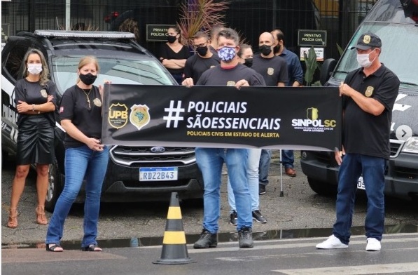 Um ato em defesa da vacinação e da valorização da atividade policial mobilizou policiais civis em todo o Estado. A manifestação, que atende a um chamado nacional da União dos Policiais do Brasil (UPB) e Associação Nacional dos Delegados de Polícia Judiciária (ADPJ), ocorreu de forma pacífica e obedecendo todas as orientações de segurança (uso de máscara, álcool em gel e distanciamento), nas Delegacias de Polícia Civil espalhadas pelo território catarinense.