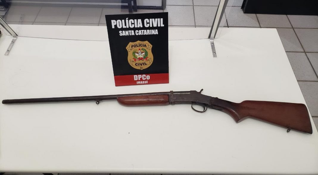 A Polícia Civil do Estado de Santa Catarina, deu cumprimento a mandado que resultou na apreensão de uma espingarda calibre 32. Ela estava na residência do suspeito, que reside em área rural da cidade.