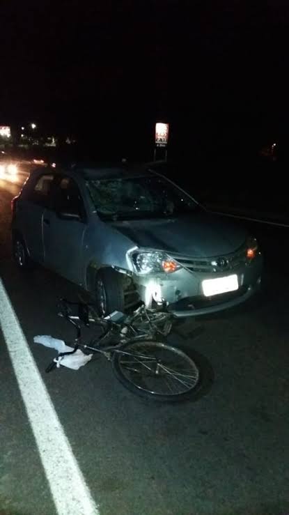 Um senhor estava passando de bicicleta em direção ao centro da cidade quando um carro acabou colidindo com ele, que teve alguns escoriações, mas passa bem.