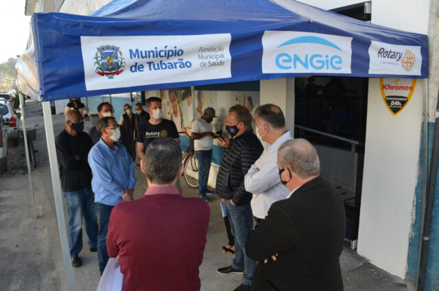A Fundação Municipal de Saúde (FMS) recebeu, nesta segunda-feira (31), a doação de sete tendas, em uma iniciativa do Rotary Club Tubarão Sul e da Engie. Os equipamentos serão utilizados na fundação e em outras cinco Unidades Básicas de Saúde (UBS).
