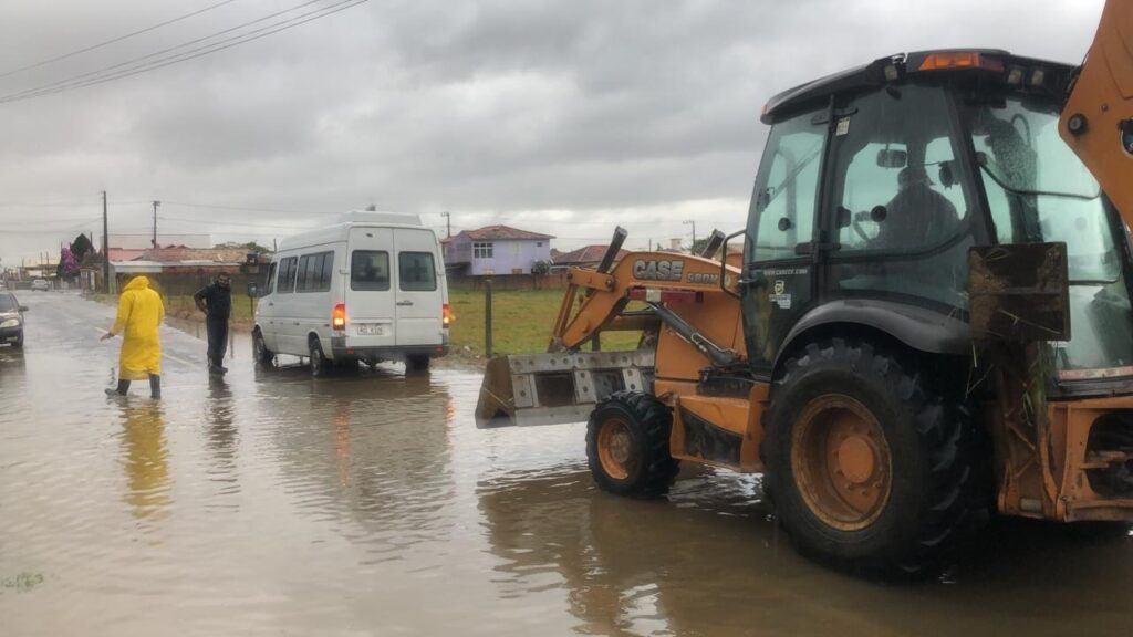 A conhecida vala que vai do Três de Maio ao bairro Santa Lúcia forma a principal via de escoamento de água da chuva na cidade e está sendo desobstruída às pressas. Ainda estão sendo desobstruídas bocas de lobo, valetas e a vala maior com uso de máquinas e mão de obra braçal adequadas para cada situação.