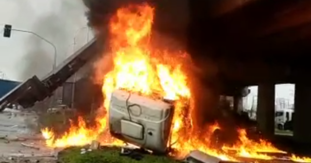 Um caminhão despencou de um viaduto, pegou fogo e, em seguida, explodiu no km 216,1 da rodovia BR-101, em Palhoça (SC), na região metropolitana de Florianópolis nesta terça-feira (14). A tragédia ocorreu no trevo de acesso ao bairro Arirú, por volta das 8h10.