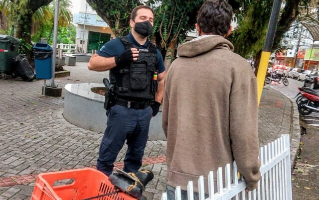 O furto foi constatado por volta das 8 horas quando uma guarnição da GMT avistou o suspeito transportando a grade em uma bicicleta nas imediações da ponte Nereu Ramos e da rua Lauro Müller. Questionado pelos agentes da origem do equipamento, o homem relatou que havia ganhado da dona de uma residência, mas a versão apresentada não foi convincente.