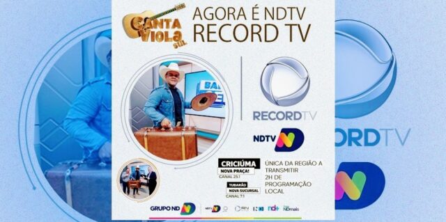 Com muita alegria gostariamos de comunicar a todos a estreia do Canta Viola Sul dia 05/12 na NDTV/RECORD TV, para todo sul do estado de Santa Catarina.