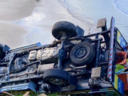 Veículo capota durante instalação de Natal no Farol de Santa Marta