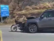 Vídeo registra motorista dirigindo um carroenquanto empurra uma motocicleta, apósum acidente, na Rodovia dos Imigrantes,altura do quilômetro 14, sentido litoral, emDiadema, na...