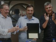 O governador Carlos Moisés foi homenageado pela diretoria da Associação Empresarial de Tubarão (Acit), em uma reunião na sede da associação.