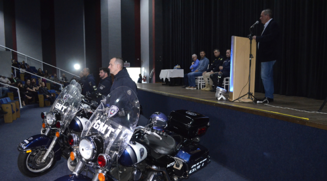 As Harley Davidson, modelo Road King Police 2007, foram doadas pela Polícia Rodoviária Federal (PRF) do Paraná no ano passado. O chefe do Núcleo de Motociclismo Policial do Paraná Diogo Rodrigues participou da solenidade.