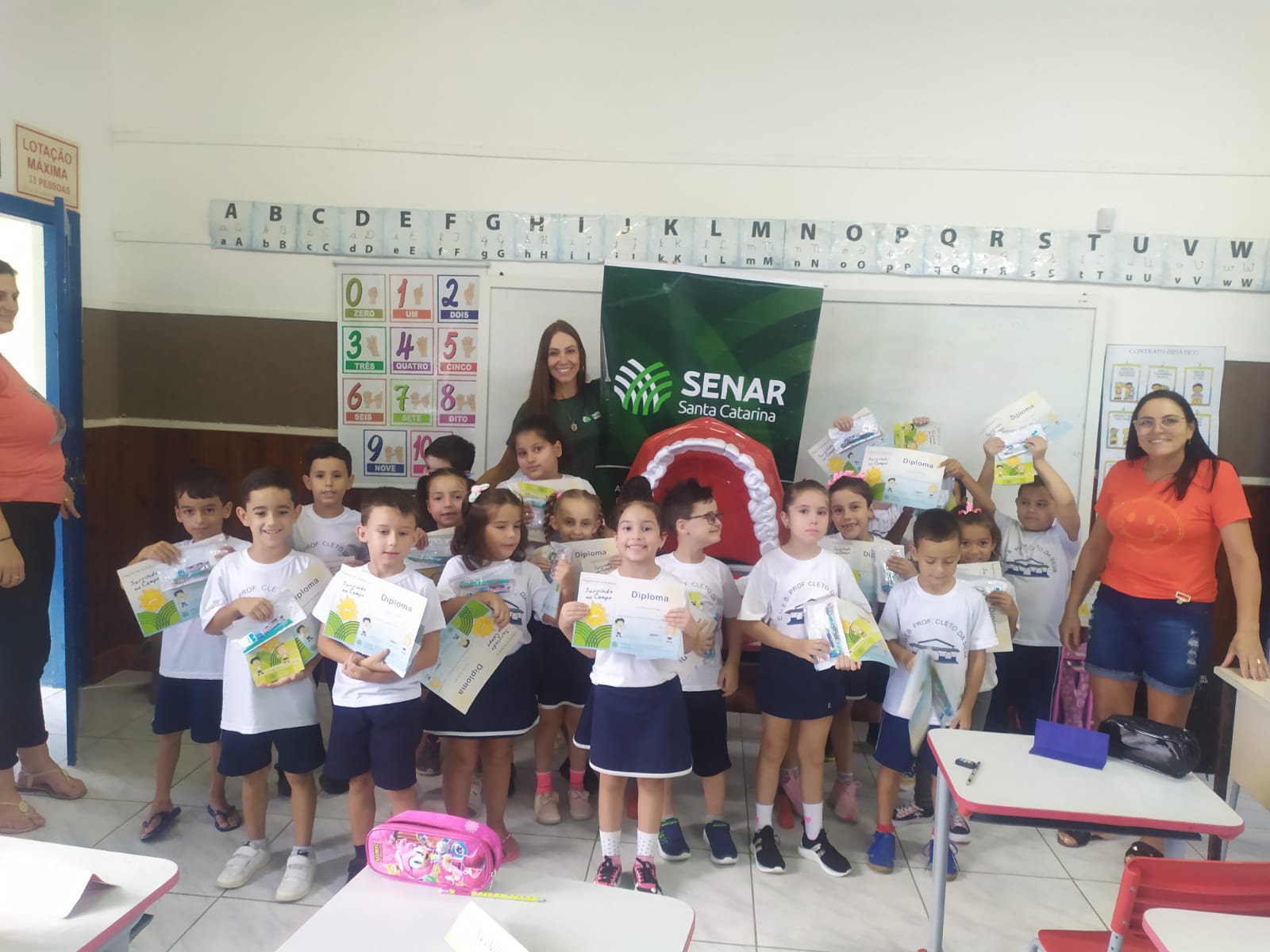 Foi para aprender a manter os dentinhos sempre limpos, que as turminhas do pré-escolar do CEI Anjos da Guarda e do 1º ao 5º Ano, da escola municipal Cleto da Silva participaram da palestra ministrada pela instrutora e dentista do Serviço Nacional de Aprendizagem Rural (SENAR).
