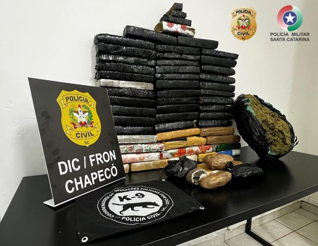 Uma operação coordenada entre Polícia Civil de Santa Catarina e a Polícia Militar desarticulou nesta quarta-feira (13) um ponto de armazenamento de drogas no município de Chapecó, região Oeste do estado. Durante a operação, foram apreendidos aproximadamente 36 quilos de maconha e 2,5 quilos de haxixe. Um casal foi preso em flagrante.