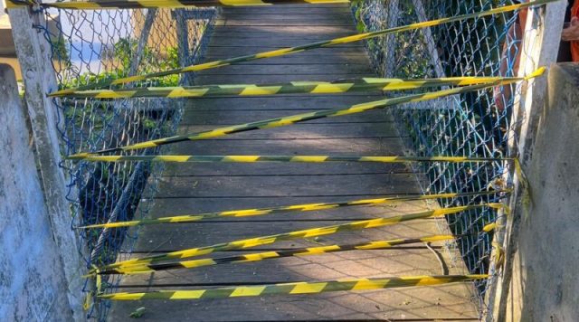 A Secretaria de Proteção e Defesa Civil de Tubarão interditou, nesta segunda-feira (24), a Ponte Pênsil do Centro devido a danos estruturais identificados no piso de madeira e no guarda-corpo. A medida foi adotada para garantir a segurança dos pedestres que utilizam a travessia diariamente.