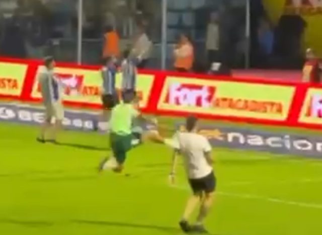 Orge Jiménez, jogador da Chapecoense, agrediu dois torcedores do Avaí no gramado da Ressacada após a final do Catarinense, neste sábado. No vídeo, ele empurra um torcedor com força. Em seguida, acerta uma voadora no pescoço de outro, que estava de costas. Depois, ainda tenta chutar a cabeça do homem caído. A confusão começou após a invasão de campo dos torcedores do Avaí. Os jogadores do time já estavam no vestiário.