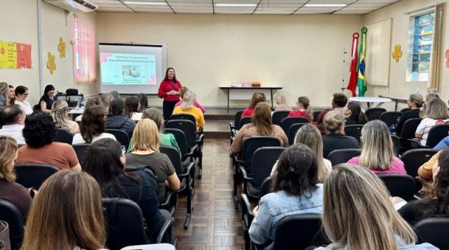 Profissionais das áreas da assistência social, saúde e educação assistiram na tarde desta segunda-feira (26), no auditório da Secretaria de Assistência Social, Mulher e Família (SASMF), à palestra “Violência, Trauma e Escuta Especializada Crianças/Adolescentes”, em alusão ao Maio Laranja. O conteúdo foi ministrado pela Psicóloga e neuropsicóloga e coordenadora do Serviço Família Acolhedora Gisele Pickler.