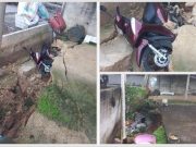 Barranco cede após escavação, muro desaba e moto é soterrada