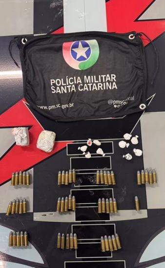 Com o apoio dos cães farejadores K9 GAM e K9 DOM, os policiais encontraram porções de maconha e cocaína já fracionadas e prontas para a venda, além das munições. Todo o material foi apreendido e encaminhado à Delegacia de Polícia Civil.