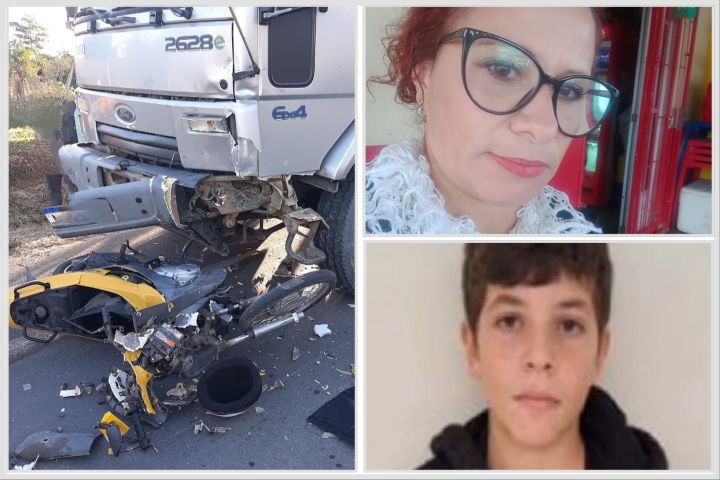 Mãe e filho morrem em colisão entre moto e caminhão