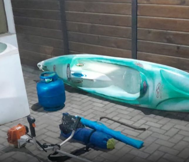 Foram recuperados uma roçadeira, botijão de gás, caiaque, máquina de lavar, tenda de praia, guarda-sol e um pé de cabra