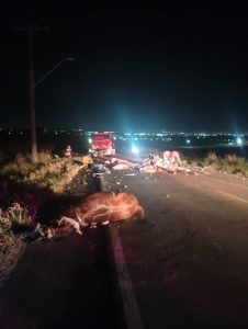 Um homem de 43 anos sofreu amputação da perna direita e ferimento lacerante no membro esquerdo após um acidente envolvendo um caminhão Volvo 290 e uma carroça de tração animal, na madrugada desta quinta-feira (21), em Içara.