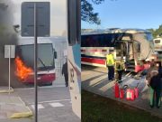 Ônibus que transportava estudantes pega fogo em Criciúma