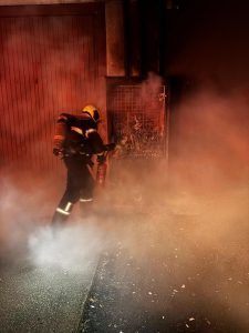 A primeira ação foi o uso de um extintor de dióxido de carbono (CO₂), que ajudou a conter as chamas e resfriar a estrutura. Em seguida, foi utilizado pó químico seco, visando eliminar possíveis focos ocultos e interromper a reação em cadeia que poderia reativar o incêndio. Mesmo com a situação parcialmente controlada, ainda foram observadas pequenas reignições devido ao calor acumulado. Para garantir o completo resfriamento, foram aplicados jatos intermitentes de água, após a confirmação da ausência de energia elétrica no local.
