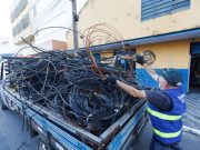 Terceira etapa de retirada de fios obsoletos recolhe 15 mil metros de cabos em...