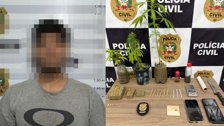 A Polícia Civil de Santa Catarina prendeu nesta terça-feira (30) um homem, de 21 anos, suspeito de tráfico de drogas em Rodeio. A ação ocorreu no bairro Rodeio 12, dentro da tabacaria de propriedade do investigado.