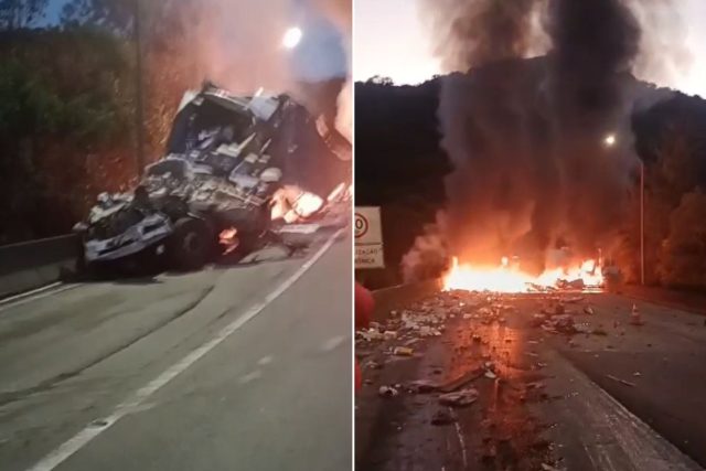 A BR-376, em Guaratuba, na Serra que liga Santa Catarina ao Paraná, está interditada neste momento após um grave acidente na Curva da Santa.