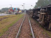 Trem de carga descarrila em Criciúma e trânsito é interrompido