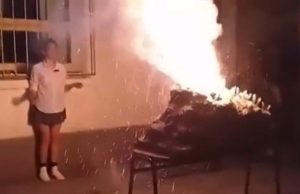 Uma maquete de vulcão explodiu durante uma feira de ciências O acidente deixou 17 pessoas feridas, entre elas...