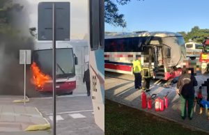 Ônibus que transportava estudantes pega fogo em Criciúma