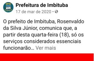 A Prefeitura de Imbituba comunica que, a postagem com o título, "Notícia Urgente", que circula nas redes sociais, e informa o fechamento...