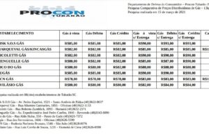 Pesquisa de preços do gás de cozinha é divulgada em Tubarão