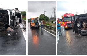 Motorista de caminhão morre após tombar veículo em ponte na BR-101,...