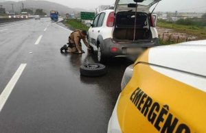 Uma mão amiga: Policiais ajudam senhora a trocar pneu na SC-401