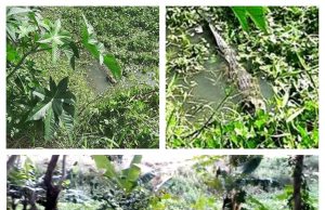 Jacarés são avistados em valo perto de casas no bairro Humaitá...