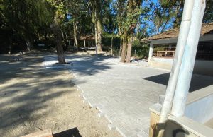 Bastaram duas semanas de trabalho é a pavimentação com blocos do pátio da gruta Nossa Senhora da Saúde já está bastante adiantada....