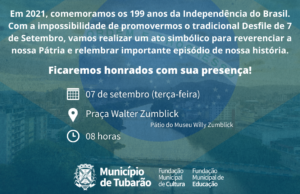 Em 2021, pelo segundo ano consecutivo, os tubaronenses não poderão acompanhar o tradicional Desfile Cívico de 7 de Setembro. Devido à pandemia,...