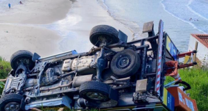 Veículo capota durante instalação de Natal no Farol de Santa Marta